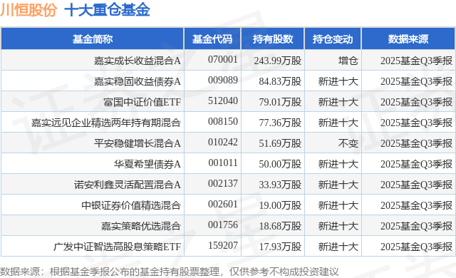 根据2025基金Q3季报公募基金重仓股数据,重仓该股的公募基金共22家,其中持有数量最多的公募基金为嘉实基金的嘉实成长收益混合A。嘉实成长收益混合A目前规模为17.86亿元,最新净值1.3548(11月20日),较上一交易日下跌0.47%,近一年上涨17.6%。该公募基金现任基金经理为方晗。方晗在任的基金产品包括:嘉实对冲套利定期混合A,管理时间为2021年4月9日至今,期间收益率为-14.34%;嘉实策略视野三年持有期混合,管理时间为2021年12月28日至今,期间收益率为-23.86%;